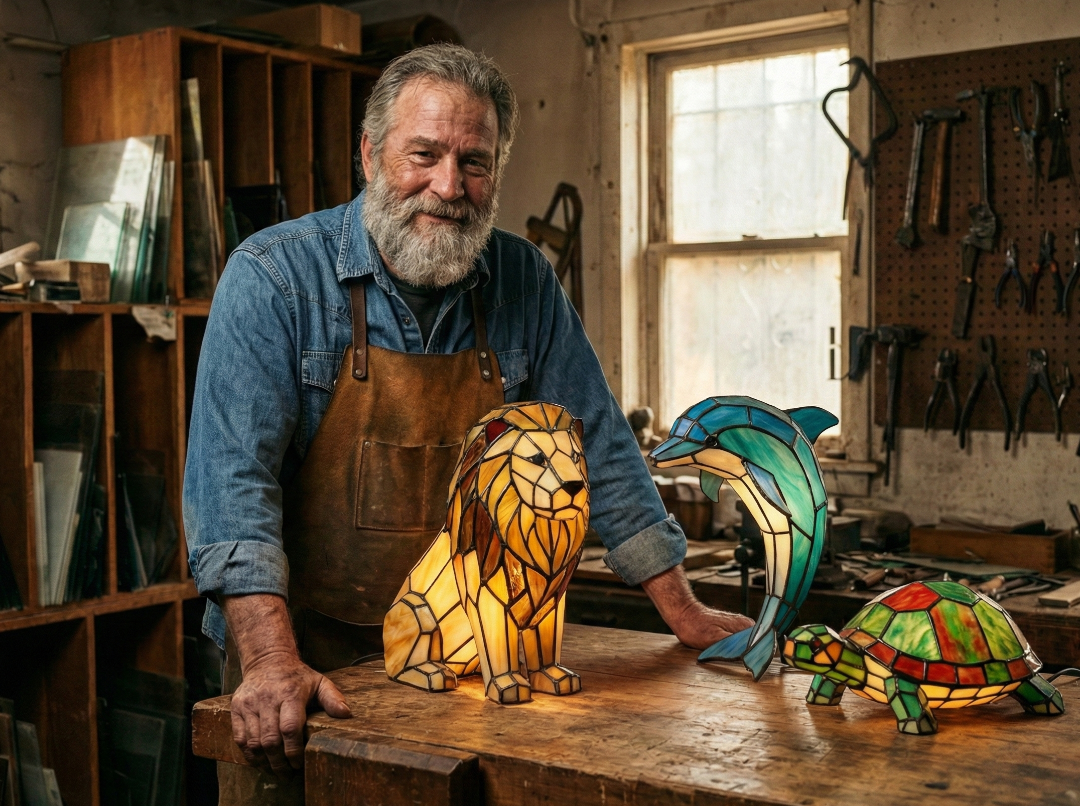Glass&Glow wasn't born in a boardroom; it was born in my garage and grew in this studio. Every piece, whether it's the Lion, the Dolphin, or the Butterfly, is made by cutting glass by glass. I thought I would retire here. But real estate "progress" doesn't care about art or history. They just want the empty space to build condos.